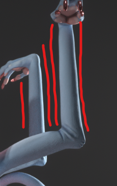 А, есть одна забавная деталь. На каком-то этапе у ручальчонка были птеригоподии, но это выглядило настолько стрёмно, что я просто их сгладила.
