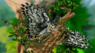 Вот её-то я забьла в пост с прогрессом добавить, но именно в то время я и начала её делать. Как-то в вк увидела комм, что у ангелочков должны были быть мышечные горбы для поддержания крыльев и я подумала, а почему бы и нет. Пока искала рефы, чёт заметила, что за основу дизайна не использовалась южноамериканская гарпия и я подумала, а почему бы и нет (2). По итогу вышло ни там, ни сям, но мне нрав, несмотря на все муки. В основном весь адок связан с детализацией, все маленькие перья это скульпт. Я настолько с ними упоролась, что хайполи вышла где-то на 150 лямов поликов. Скрипя сердцем пришлось урезать, мармосет просто вылетал при запечке. Потом на этапе рига меня приспичило сделать перья на плечах и ногах отдельным объектом, а там уже и голова с шеей пошли под детач. Снова произошёл откат назад, зато ещё чуток доработала детализацию, в 4й раз допилила морду клюва. Риг крыльев это отдельный котёл. У адванседа есть курв гайд для этих целей, но это всё равно звездец.