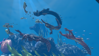 Начало с ним был в посте с прогрессом, но там далеко не вся история. Работа над ним дико затянулась из-за моей тупости. Хотела сделать ему стилизованные перья, но когда разложила их, поняла, что юв-то нет. Пришлось переделывать на простые плейны с текстурой, имхо так симпатичнее. У эрликозавра в JW Alive просто текстура перьев на спине с несколькими торчащими плейнами, так что так можно. Ещё выкрутила лапки в правильную сторону, закрыла челюсть и сгладила мускулатуру.