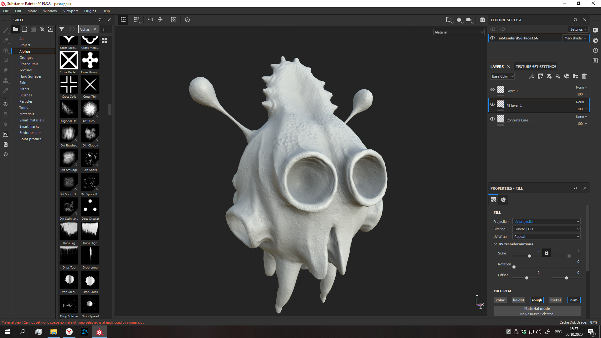 Объединяла все части в один объект. Пожалела что не сделала это раньше и что фактуру делала в зебре, тк в сабстенс на это уходит пара кликов. Ещё и качество похерилось, мде. Наверно придётся выключить слои, сделать всё тоже самое заново. Или запечь так, никто же не будет под микроскопом всё разглядывать.