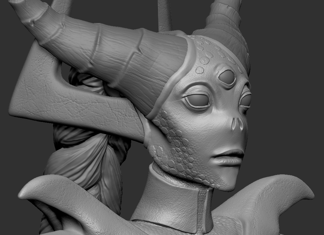 Основная работа выполнена, осталось добить фактуру, разобраться с сабстенс и покрасить. Мержить в конце буду, по отдельности все сабтулы держу, думала буду прятать чтобы лагало меньше, ага. Хочу по-тихоньку собрать некоторых своих монстров в одну расу, а это будет их королева. Доделаю её и возьмусь за мужской вариант. Имя ещё выбираю.