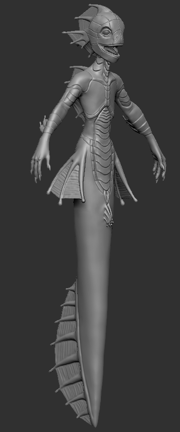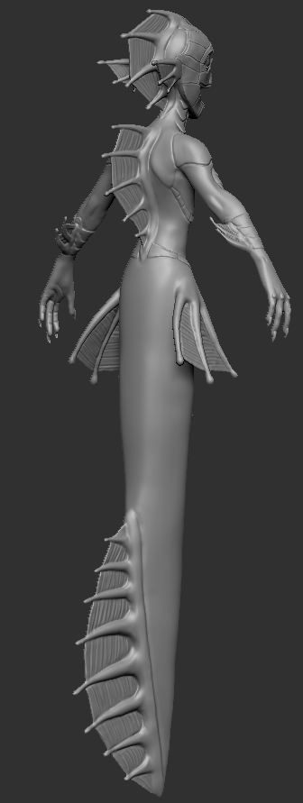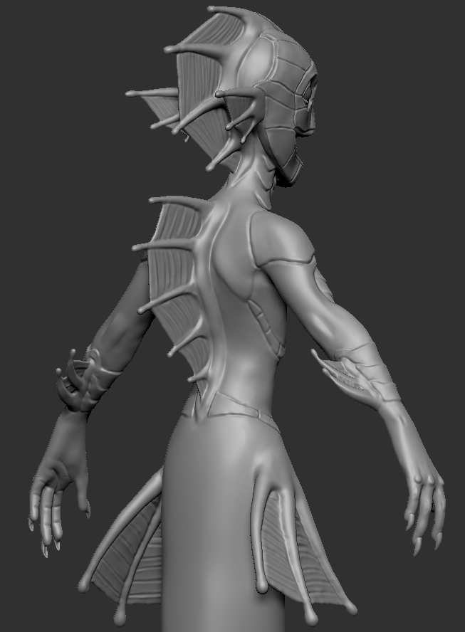 Основная работа выполнена, осталось добить фактуру, разобраться с сабстенс и покрасить. Мержить в конце буду, по отдельности все сабтулы держу, думала буду прятать чтобы лагало меньше, ага. Хочу по-тихоньку собрать некоторых своих монстров в одну расу, а это будет их королева. Доделаю её и возьмусь за мужской вариант. Имя ещё выбираю.
