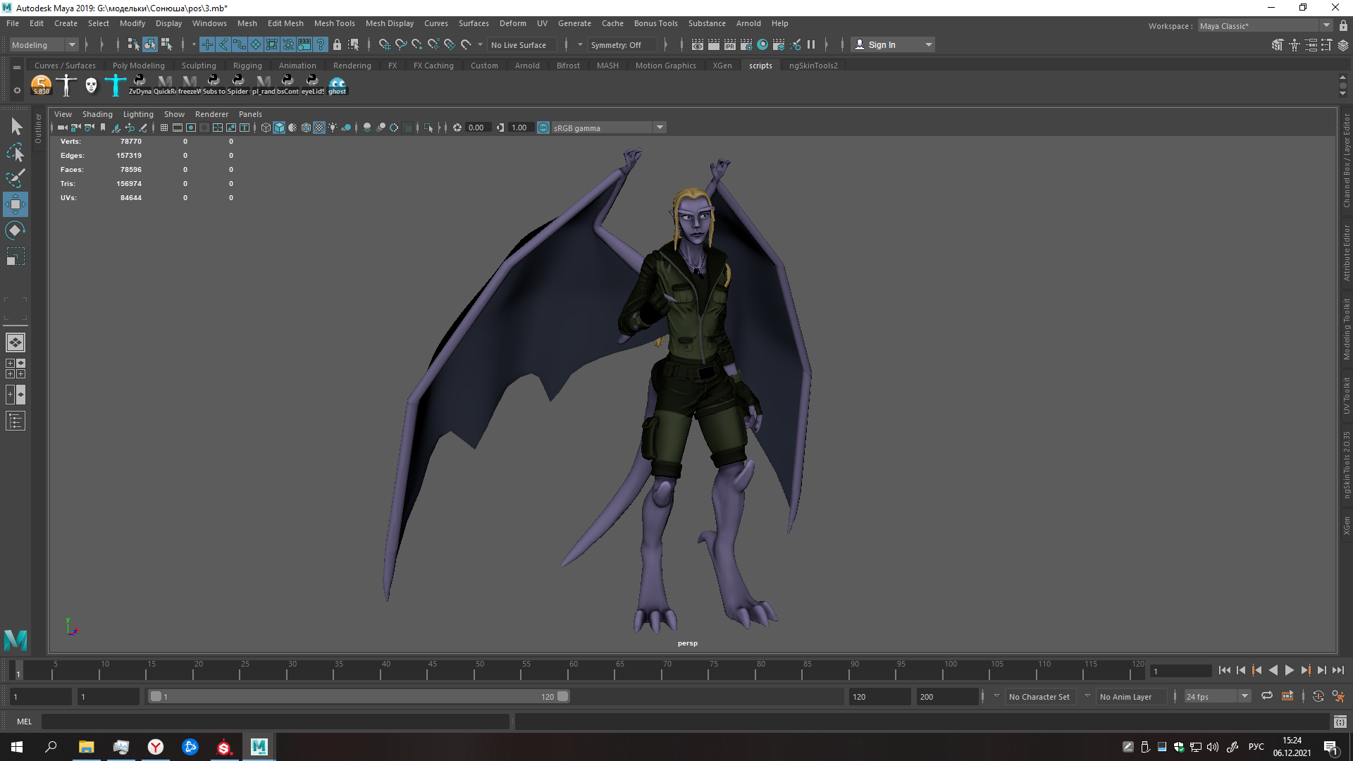 Больше всего нервов ушло на скин крыльев и сетап лица, адвансед скелетон довольно капризный в этом плане. Зато ещё лучше разобралась как всё это работает. Но это не точно. Вроде всё идёт хорошо, а уверенности в себе всё равно не хватает