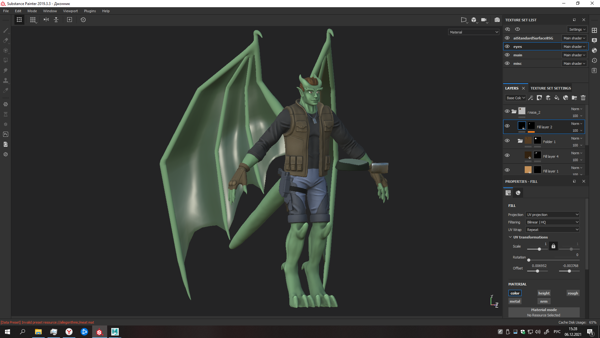 То что текстуры местами всратые стали, это я переделывала юв карту и немного слетели мазки в сабсе. И я никак не разберусь, как карту металнес в материал арнольда правильно экспортировать