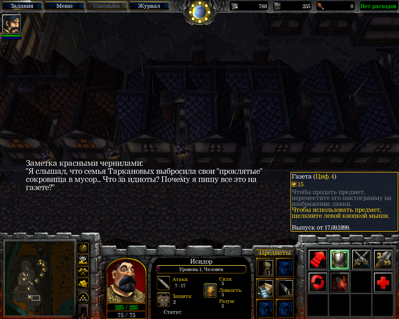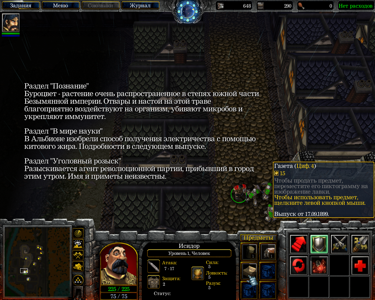 Нам под контроль дают человечка, который хочет есть и не болеть. Мана в этой карте заменена "иммунитетом". Этим на данный момент сказано почти всё. Квестов нет, вернее есть, но скорее нет. Дела, которыми можно заняться в городе можно по пальцам перечесть - рыбалка, работа грузчиком и шопинг...