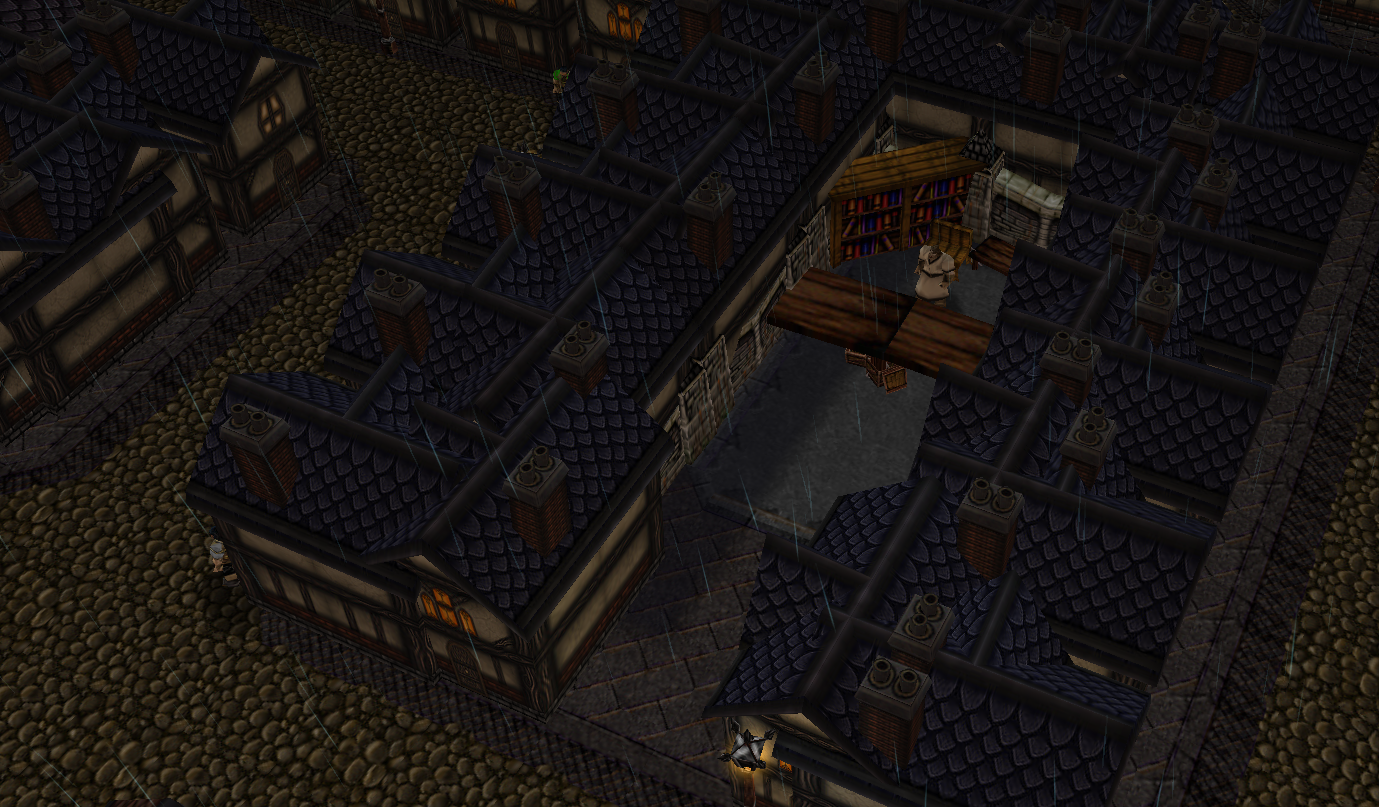 Внутри зданий тоже сделай как-то интересней. Пусть по-умолчанию будет какая-то крыша, которая при приближении становится прозрачной.