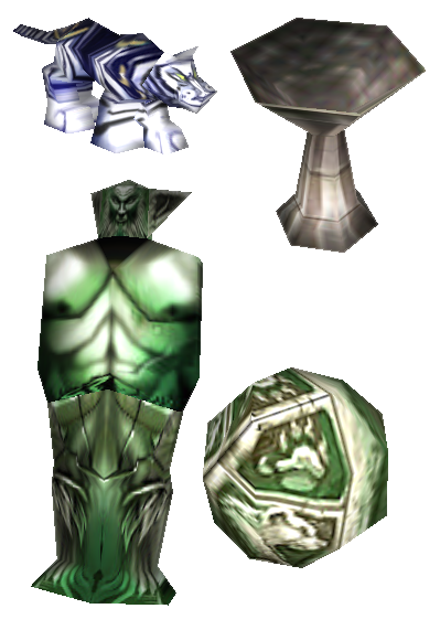 Элементали земли из разного камня, даже заснеженного и раскалённого, разумеется, без импорта текстур. Есть звуки, но браслеты без Decay.