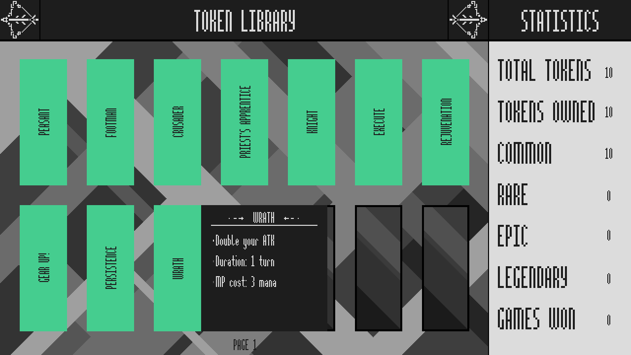- Токены имеют редкость, самые простые - цвета морской волны (на данный момент - 10 токенов, они же - стартовый набор игрока)