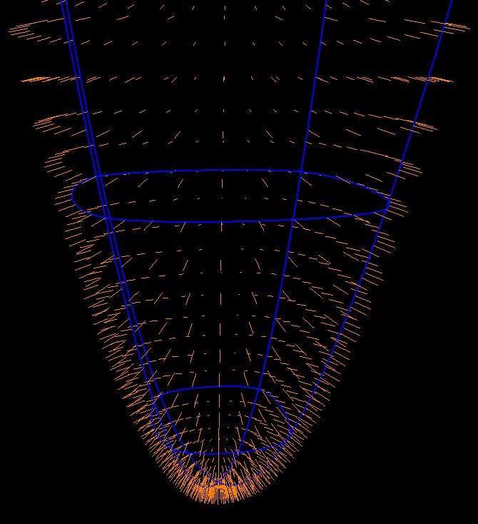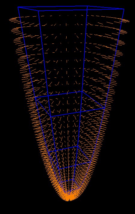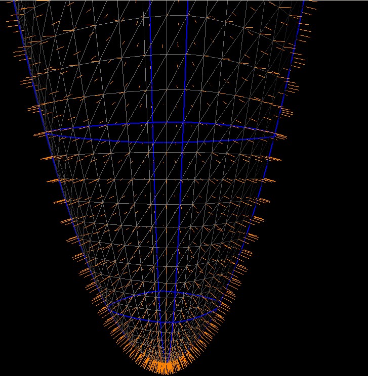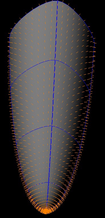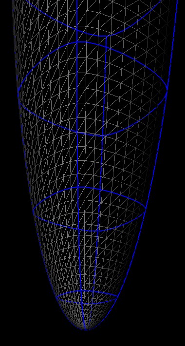 Все вершины, треугольники и нормали генерируются програмно, за исключением небольшого набора вершин, задающего узлы направляющих.