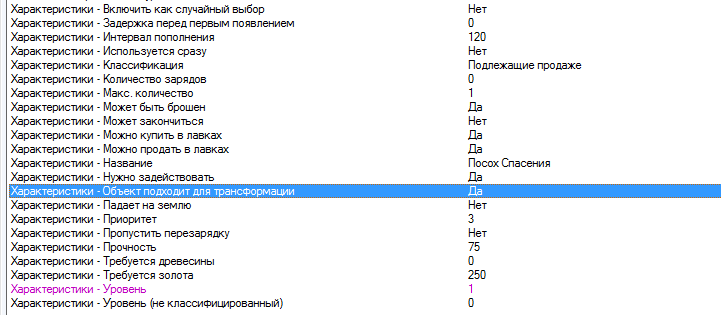 Проанализировав применение на предметы, пришел к выводу: если предмет имеет 0 уровень – способность на него никогда не сработает. Также основой ее работы является неприметная и ранее непонятная галочка в редакторе объектов. Она как раз и отвечает за возможность осуществления превращения.