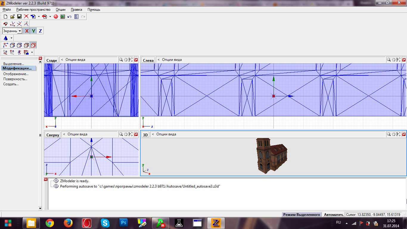 - ZModeler 2.2.3 - небольшая программа для 3D моделирования, чем-то напоминающая MilkShape. Через нее можно быстро и легко отредактировать модели из некоторых игр, а так же создать с нуля.