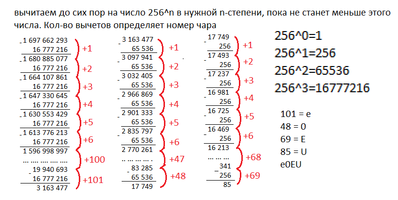 Перевод 10-числа в 256-число = функция DEC2ASCII