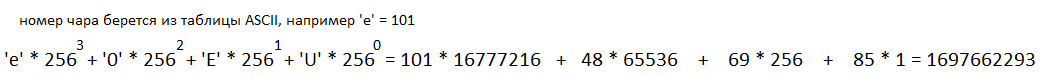'e0EU'(Characters) - 256-ричная система счисления ASCII, каждый символ называется "чар" (char).