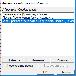 - t effecttype - строка абилки. У абилки оч много разных эффектов: на кастера, на мага, на цель, снаряды итд. Здесь можно выбрать из какой строки абилки хотите изъять