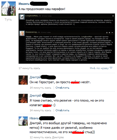 А в простых словах - есть же просто ст об оскорблении в Административном кодексе? Почему не должно быть ст об оскорблении именно чувств верующих? Вполне логично. Чувства атеистов, кстати, при это никак не задеваются.