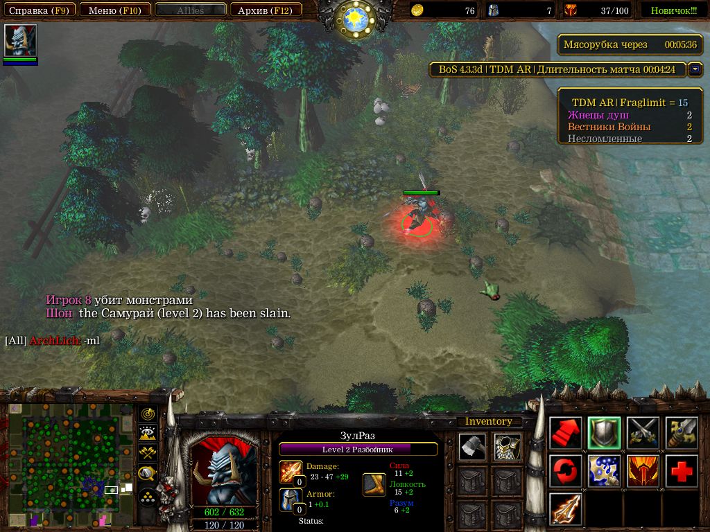 Любителям пофармить стоит обратить внимание на изменение механики заработка золота и опыта. В случае игры каждый сам за себя Вы не заметите изменений, однако в командном режиме игры стоит знать, что золото за убийство нейтрала получают ВСЕ игроки команды, где бы они не находились. Опыт за убийство нейтрала получает убивший монстра герой и все герои команды в радиусе 1000 от убитого монстра. Очки боевого духа и чести получает только убивший монстра герой. Теперь в командной игре у Вас есть выбор: фармить поодиночке, что бы в сумме накопить как можно больше золота, или же охотиться вместе, что не приведет к уменьшению полученного опыта, но не позволит врагам застать одного из Вас врасплох и заработать быстрый фраг.
