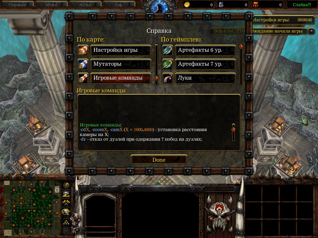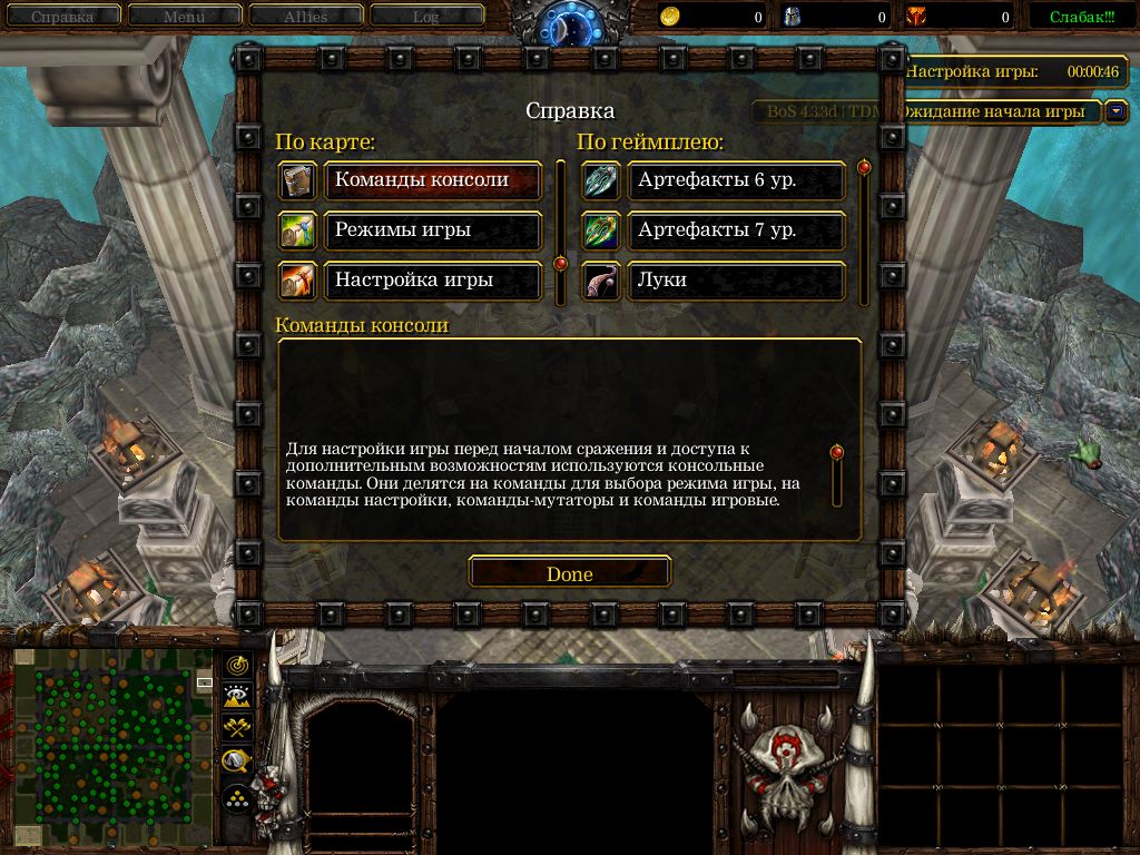 - улучшена справка по командам в меню заданий, теперь она разделена на 5 пунктов, каждый из которых просто описывает отдельный тип команд: «команды консоли», «режимы игры», «команды настройки», «мутаторы» и «игровые команды»;