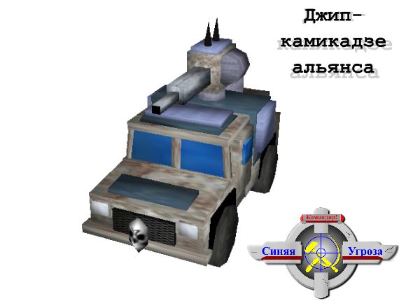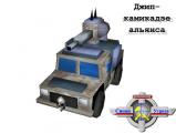 Чтобы противостоять советским пехотным подразделениям, в большинстве своём лучше подготовленным чем основная масса солдат Альянса, главным конструкторским отделом Альянса был разработан джип-камикадзе, являющийся облегчённой версией ПВО-машины "дубинка". Джип-камикадзе является исключительно противопехотным юнитом, вооруженным тяжелым автоматическим пулемётом на поворотном шасси, установленным на крыше. Конструкция этого шасси не позволяет пулемёту стрелять по воздушным целям. Сама же машина обладает слабой бронёй и годится для подавления только лёгкой пехоты. Её предельная скорость передвижения заметно ниже чем у "дубинки", из-за конструкционных деффектов, вызванных не очень качественной переделкой исходной архитектуры машины. Зато в машине установлен нестабильный двигатель, к которому подключена взрывчатка. Это даёт возможность водителю джипа-камикадзе использовать машину в качестве дешевой управляемой мины, правда эффективной только против наземной пехоты, прежде всего, из-за относительно невысокой скорости движения. При этом водитель и лишний пассажир гарантированно погибнут, так как при запуске механизма самовзрыва заклинивает двери джипа. В водители джипов-камикадзе набираются, в основном, люди с не очень стабильной психикой и ослабленным инстинктом самосохранения. Такие люди легко, по приказу командующих, нажимают "весёлую кнопку" на передней панели, запускающую процесс самовзрыва машины, не задумываясь о последствиях для себя. Дополнительно джип-камикадзе может перевезти одного пехотного наземного юнита.