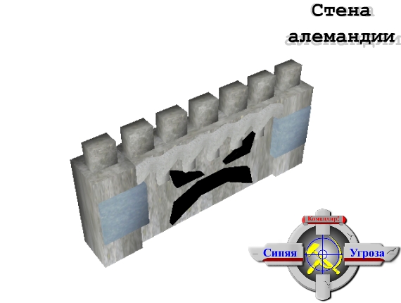 Стены, окружающие базы Алемандии, сделаны в древних традициях классического фантези - они ни только имитируют архитектуру некоторых фанезийных городов и столиц людей, но и вселяют ужас в сердца врагов "ужасающей боевой раскраской", в виде стилизованного символа злого лица, нарисованного чёрной краской - чтобы он был виден издалека.