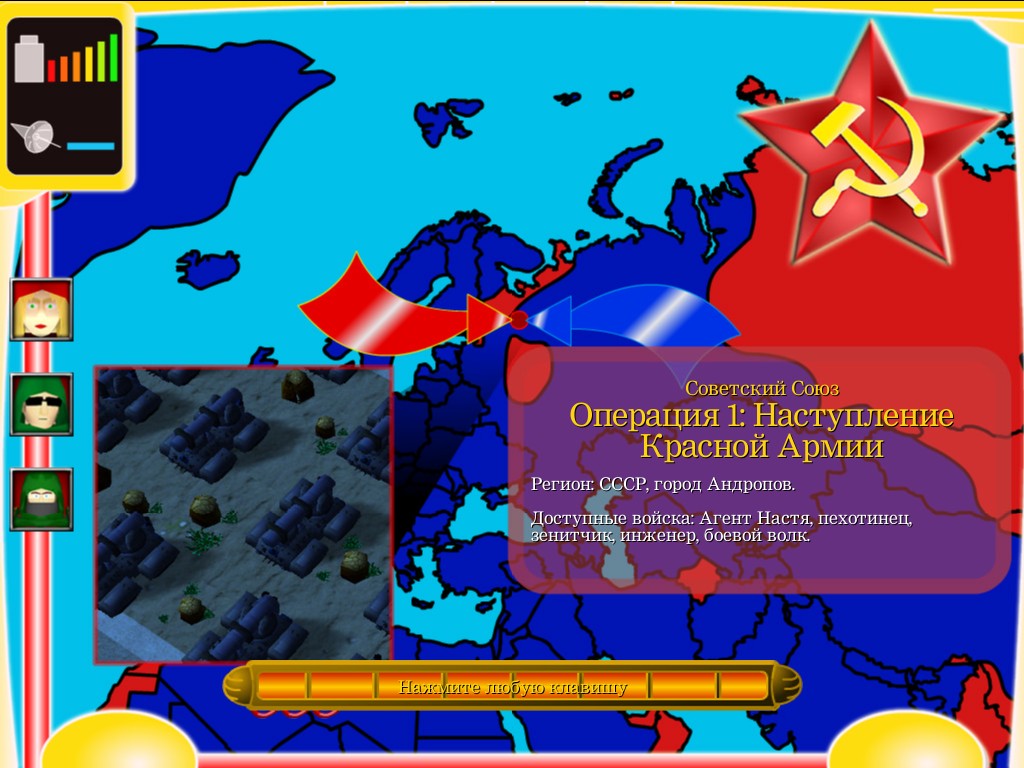 Масштабная модификация Warcraft III: The Frozen Throne, в жанре стратегии реального времени, посвящённая Новой Мировой Войне 2030 года, развязанной Западом ради захвата мира. Возглавь одну из мировых сил и приведи её к победе. Стань участником Глобальной Войны. Спаси Коммунизм, захвати мир или утопи его в анархии. Командуй и Нагибай...