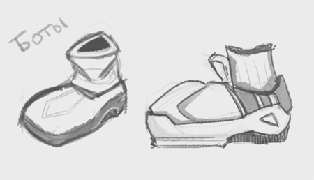 И особо важные концепты тапок и ботинок!!! Вообще ещё думаю над видом, они особо заметны не будут, но по ним должно быть понятно какой апгреид есть у игрока.