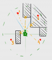 Тут 4 потенциальные позиции игрока. Ещё помните про "шестое чувство", конус видимости и максимальную дистанцию? Вот они как раз тут и есть.