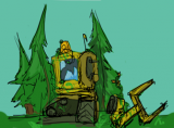 Главная идея этой локации – «победа» природы над техногенными штуками. Основной дух локации в том, что главный герой не понимает, что «вот это старый заброшенный завод» т.е. постройки и техника, и любые следы жизни людей не основные в этом месте т.е. среди хвойных деревьев можно найти завалявшийся «бульдозер», но в такой мини-сценке основной упор был бы не на этом бульдозере, а скорее на ель, например. То есть локацию скорее можно описать как ЛЕС с руинами, нежели заброшенное здание в лесу.