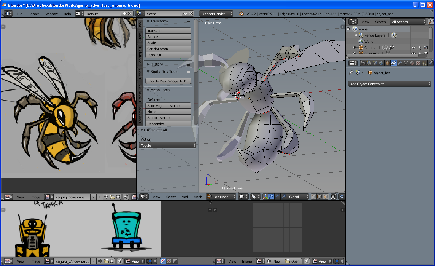 Мне не всегда нравится, когда в Develop-версии бегают всякие одноцветные кубики, которые символизируют что-то. По этой причине решил я замоделить одного жука. Надеюсь к прототипу номер 3 будет их несколько, но если не получится, то будет только он.