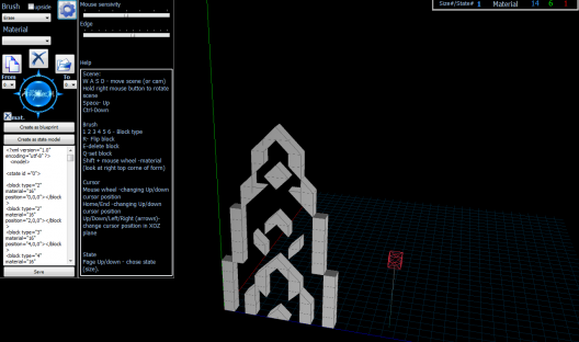 Видео, показывающее процесс быстрого создания модели, благодаря возможности использовать Ctrl+S в игре (создаётся модель состояний blockmodeldump.xml в папке …AppData/Roaming/blockscape (Win7). Можно не использовать BS_Edit как редактор, а просто загрузить модель из этого файла на нужную страницу (состояние).
