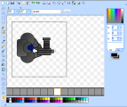В окне появился наш главный герой. Теперь выбираем на панели слева предпоследний инструмен - Hotspot. Выбрав его, щелкаем мышкой в приблизительный центр спрайта (Середина шлема). Это необходимо, так как теперь главный герой, при прицеливании, будет вращаться относительно этой точки.