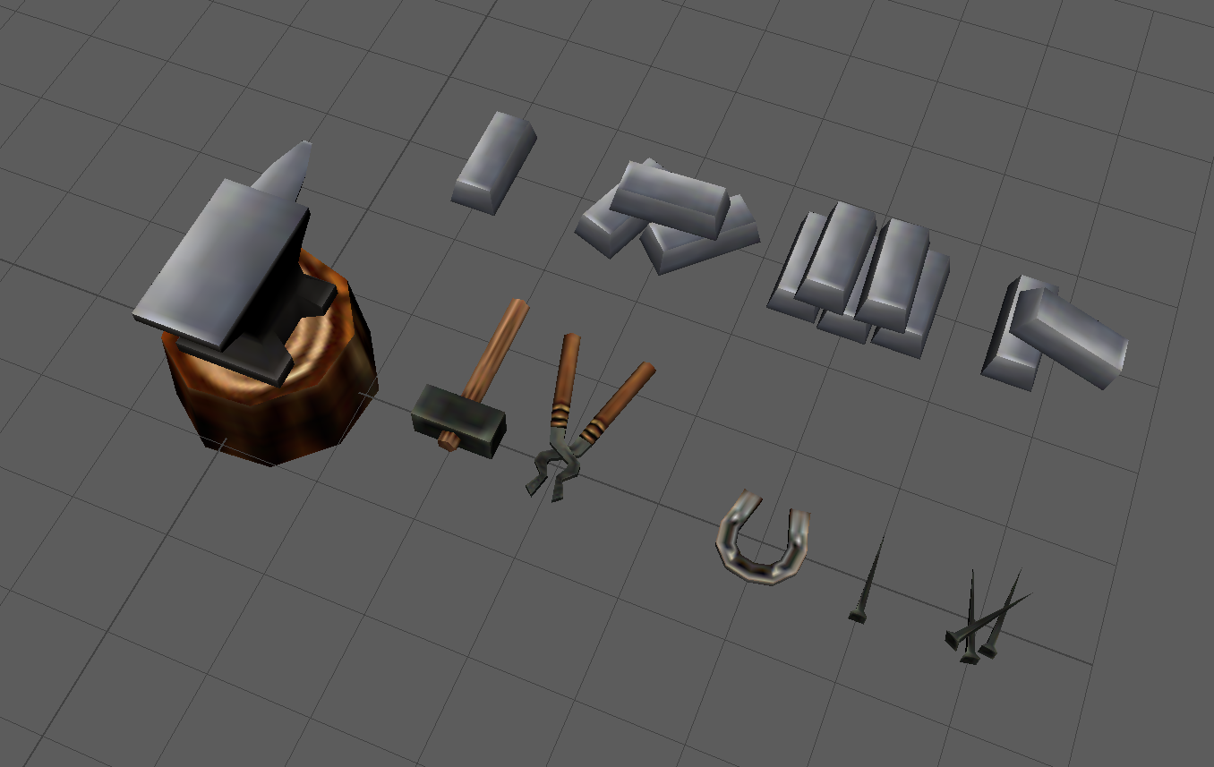 | Smithing | done | Минимальный набор есть, можно дополнять: цепи, штуки на стену, фрагменты брони |