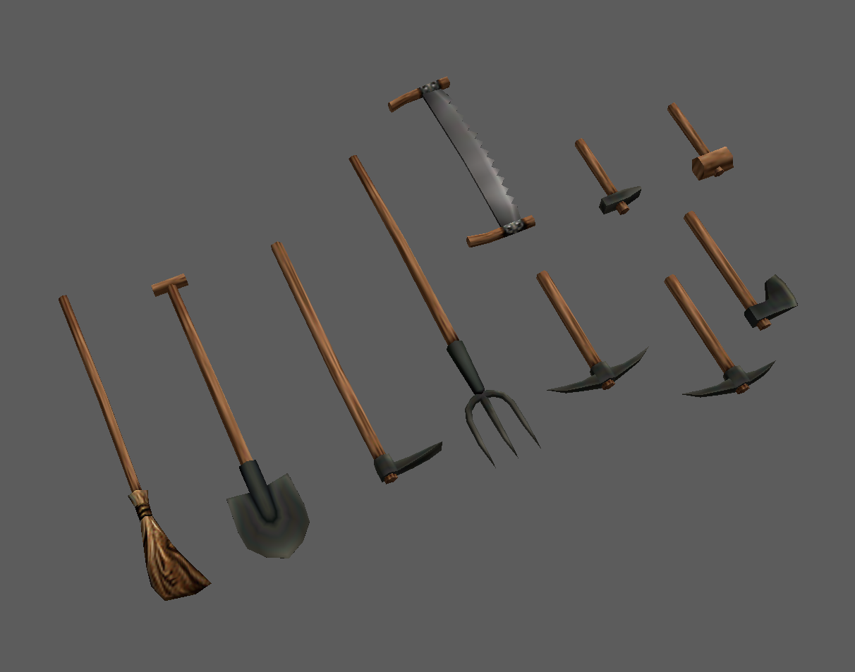 | Farming | in progress | Корыта, вёдра, сено, мешки с зерном, садовые инструменты |