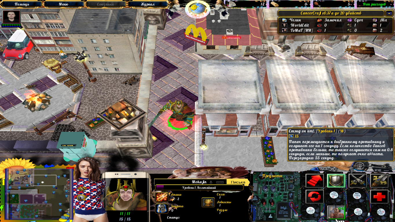 3. Триггерщики/джассеры. Потихоньку начинаю переносить карту на джасс, но нужна помощь в ускорении этого процесса. Также не откажусь от людей, которые будут делать абилки в то время, когда я не могу (занимает не меньше времени, чем нарезка медийки).