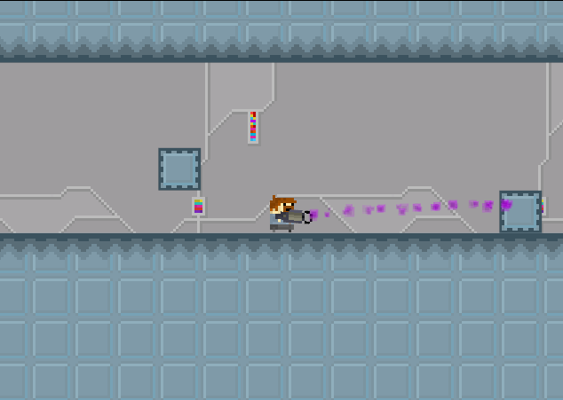 Так что теперь наш герой вооружен, очень опасен и вовсю готов противостоять цветному апокалипсису. Кстати при разработки пушки я узнал такой факт: Объект Частиц в С2 не имеет события столкновения, и взаимодействоать с объектами-спрайтами через маску коллизии частицы не могут, несмотря на то, что ами по себе частицы - все те же спрайты. Загвоздка, хоть и незначительная)