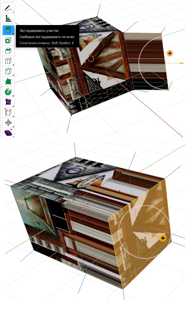- Выделение меша - > E - > экструзия - > ЛКМ