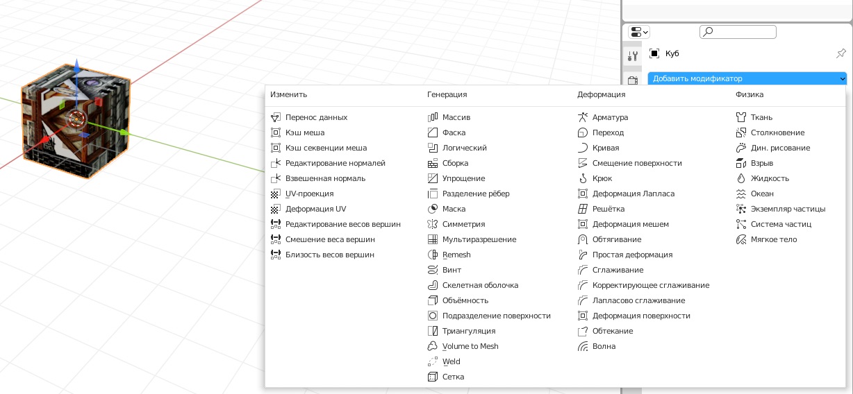 Также в Блендере есть так называемые модификаторы. Это специальные скрипты для работы с мешами.
