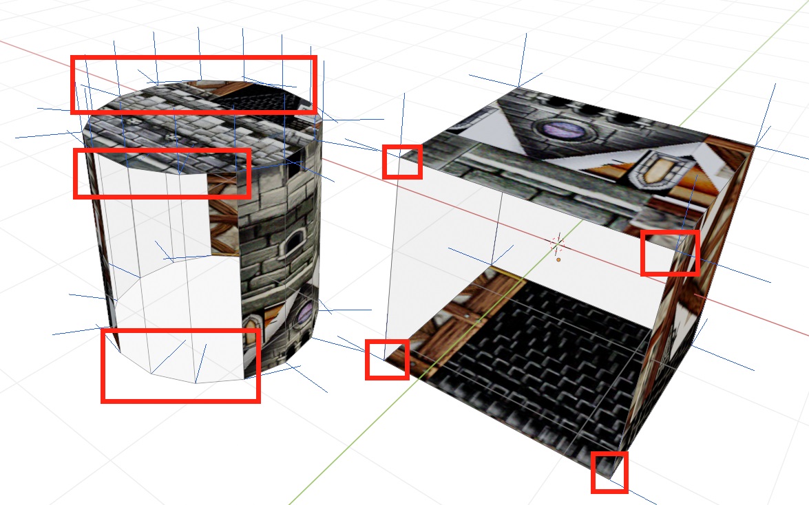Нормали - синие линии из вершин, отвечают за лицевую сторону меша. Вам нужно будет при создании модели обязательно учитывать этот момент.