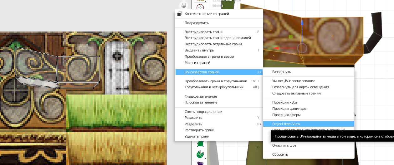 - UV - из граней можно создать UV-развёртку, но рекомендуется это делать в разделе UV Editing