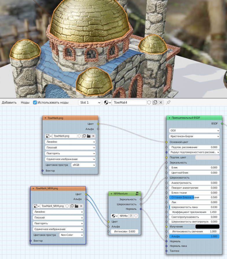 Развёртки готовы, но чего-то не хватает. Например, тимколора, чтоб понять, как будет выглядеть здание под контролем игрока. Для этого переходим в окно шейдинга.