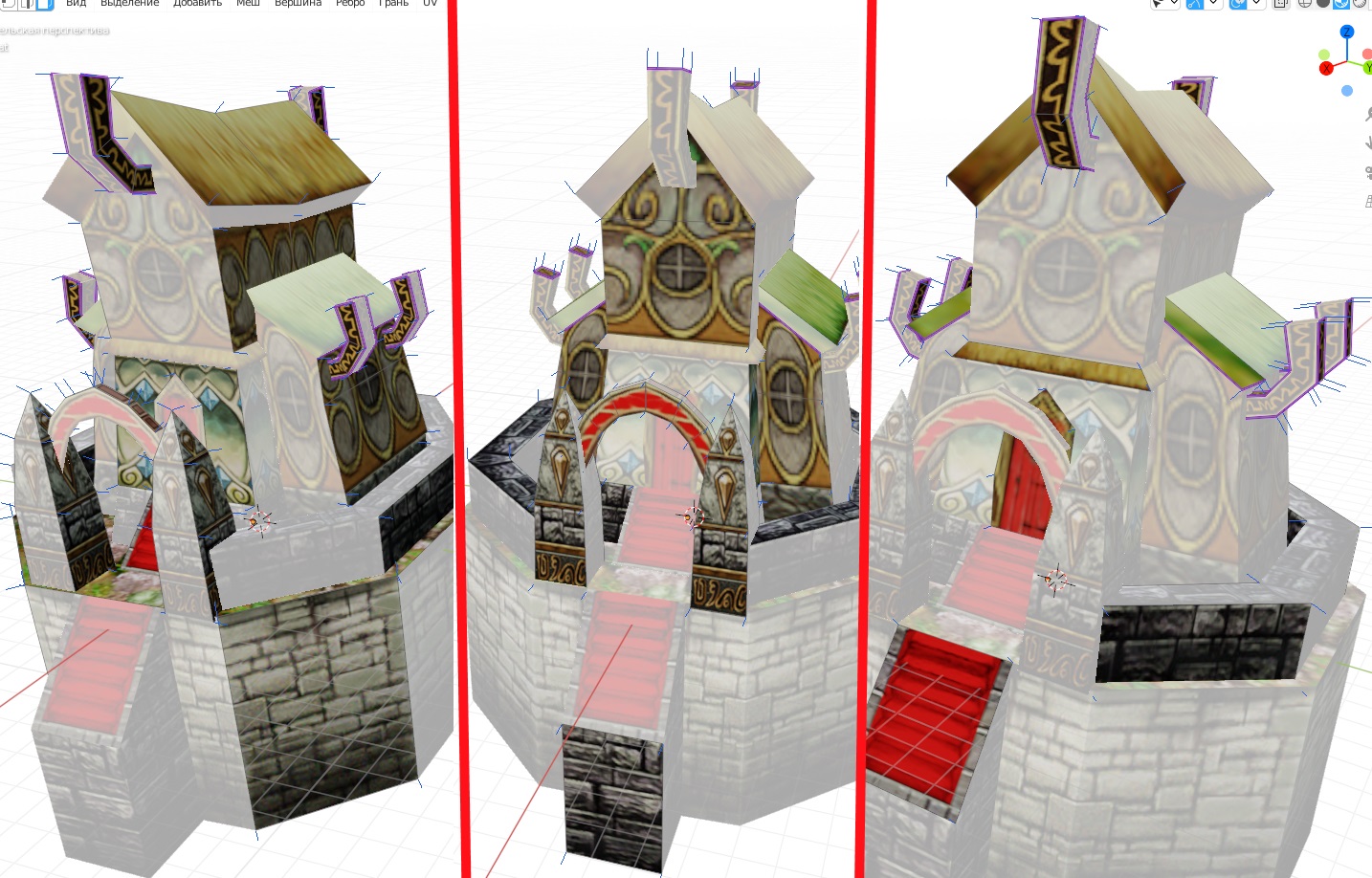 Итак, примерно за полчаса готова ратуша Высших Эльфов. Базовый меш готов, но, как видите, текстуры посажены никак. Переходим к правке развёртки.