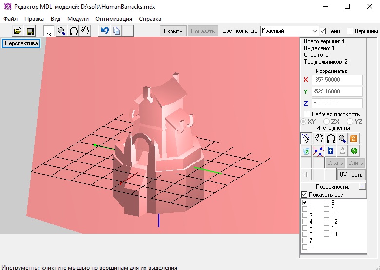 Как видите, окно имеет отличия от предыдущего. Здесь Вы и будете моделить с геометрией, как в MdlVis.