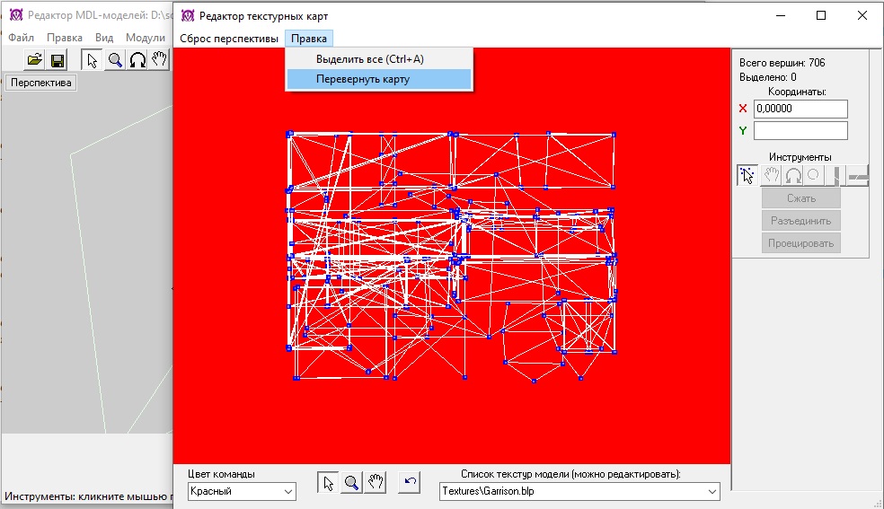 Заходим в "UV-карты" и видим... что развертка перевёрнута! И это тоже тупой глюк MdlVis. Поэтому правим развёртку.