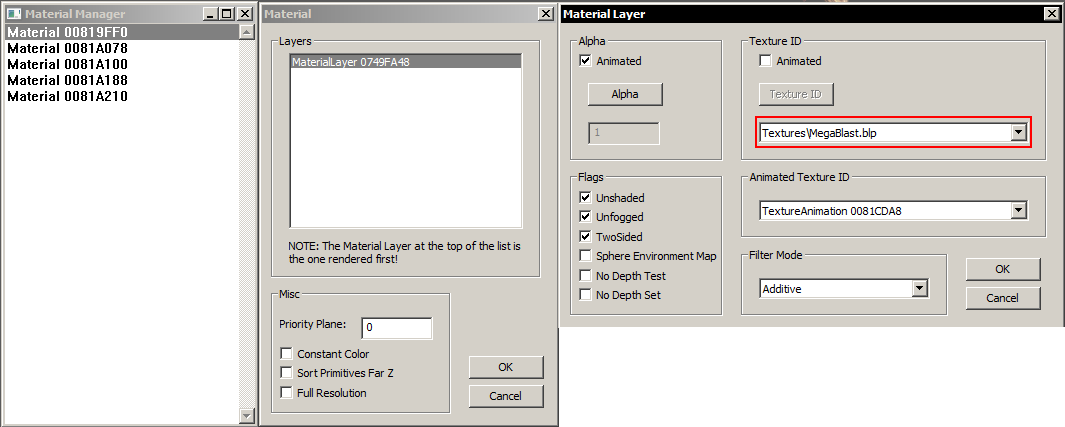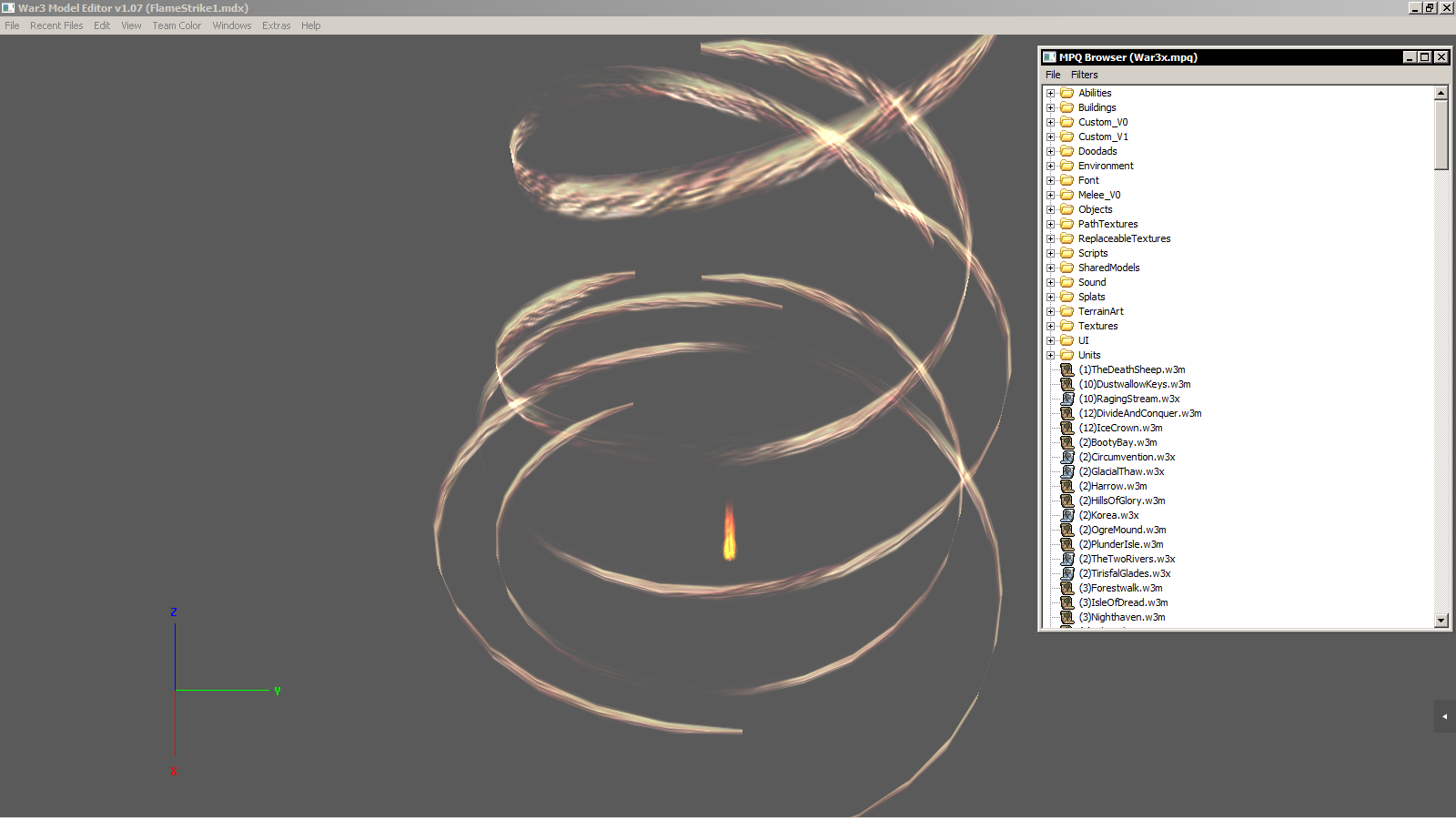 Вытаскиваем эти модели через программу, которая открывает .mpq файлы, я открывал через WinMPQ. В редакторе моделей открываем модель, я открывал через War3ModelEditor, Вы можете открыть в другой программе для Вашего удобства, главное что бы в ней можно было изменить систему частиц (particle system) в узлах (ноды - nodes) и вытащить текстуры для редактирования. Не забываем, подключить базовый .mpq файл от игры, если это необходимо, что бы можно было просмотреть изменения эффекта.