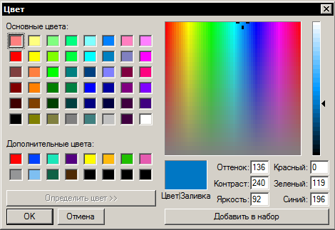 Цвет меняется в обычной палитре. Изменяем на нужные оттенки; первый сегмент - начальный цвет, то есть тот момент, когда дым только начинает свою жизнь; второй сегмент - цвет второй ступени, когда дым прожил срединную часть своего времени, то есть отлетел от источника; ну и третий сегмент - цвет перед его смертью, растворения или же затухания в среде обитания.