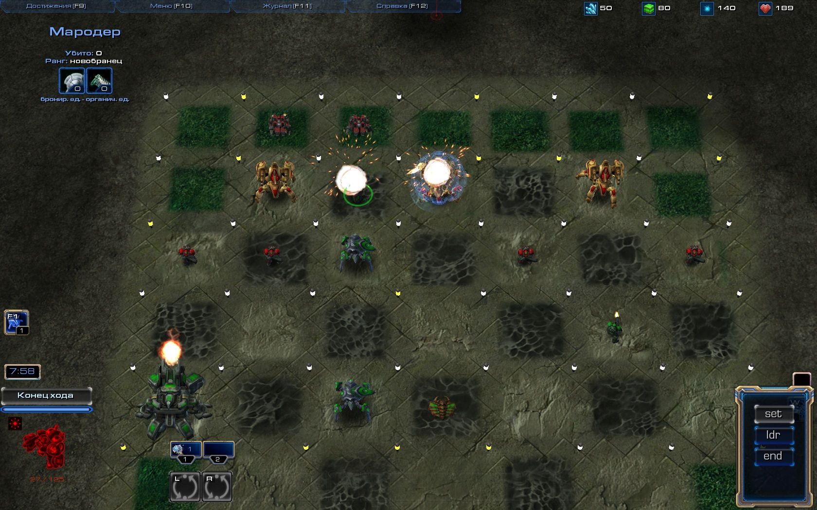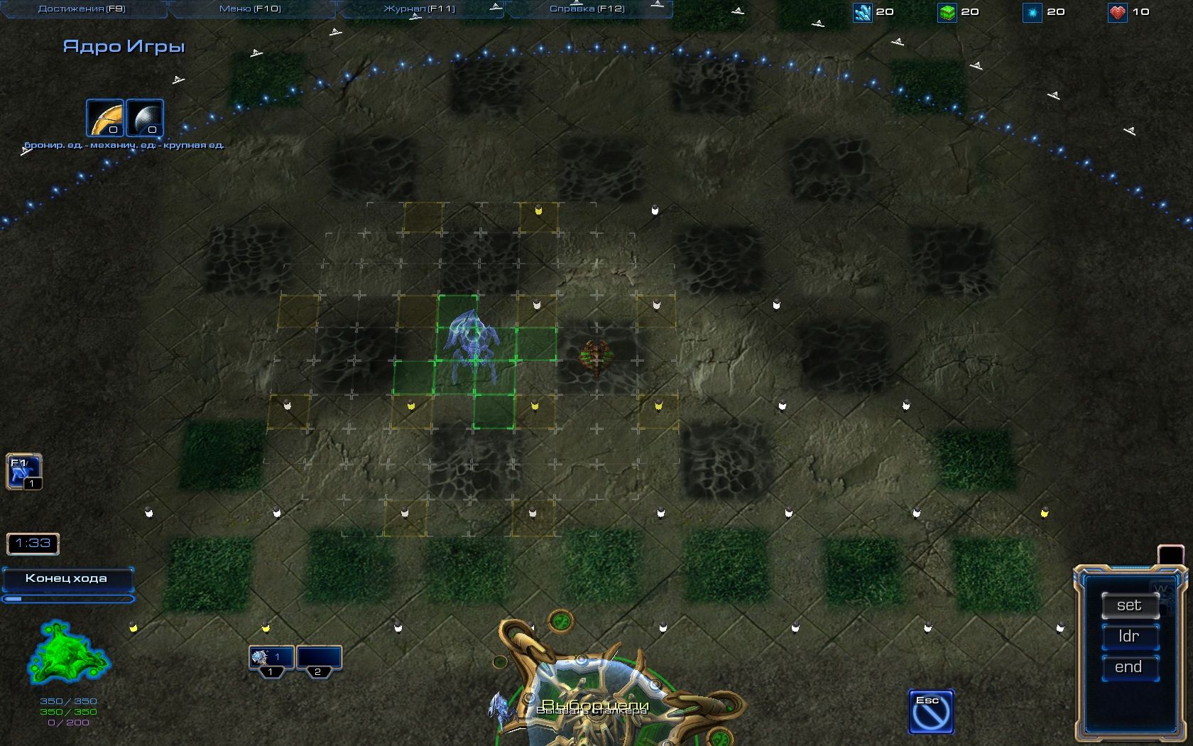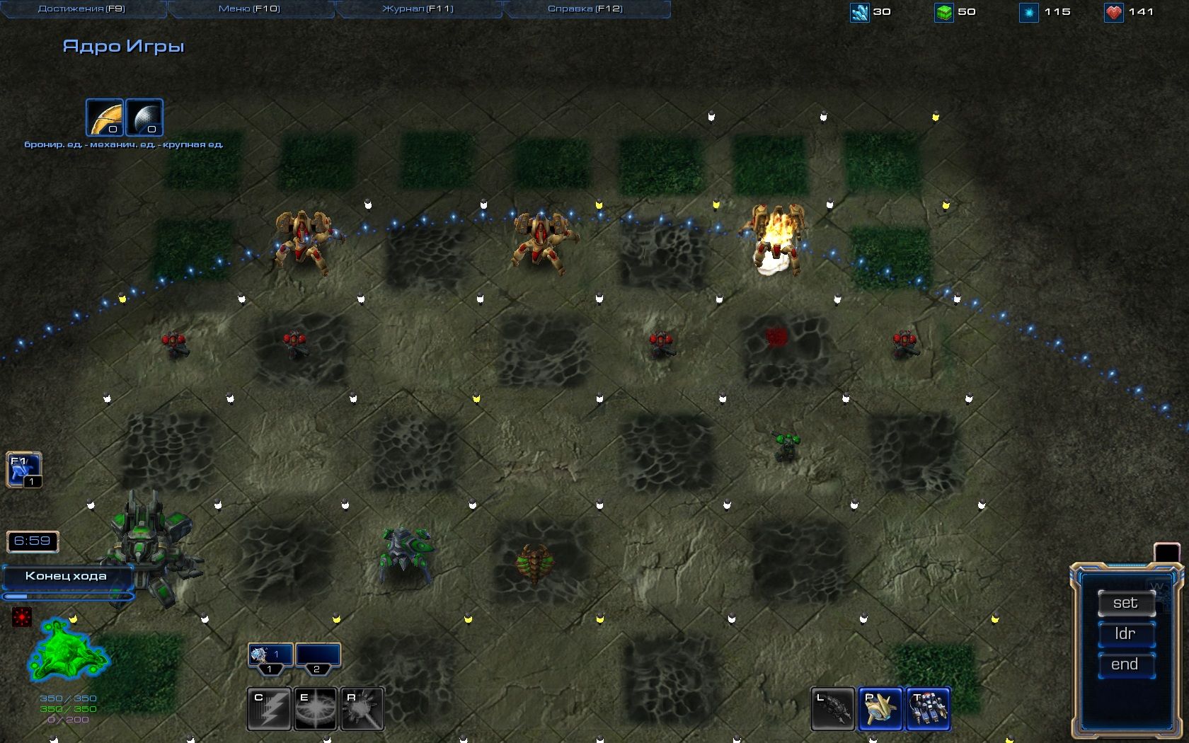 - Красивости вроде подсветки ячеек, в которых фигура будет производить поиск целей для атаки.