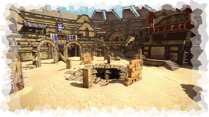 Дуэль на арене с волчьей ямой.