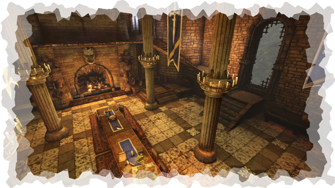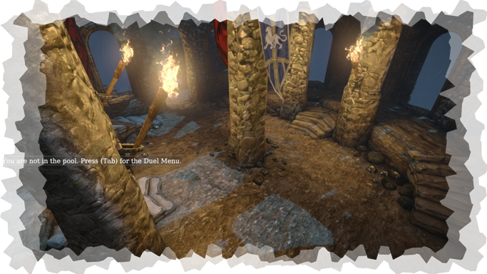 Бой в зале крепости DinningHall. Можно попробовать скинуть противника вниз.