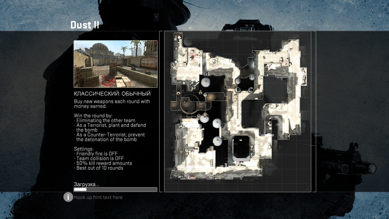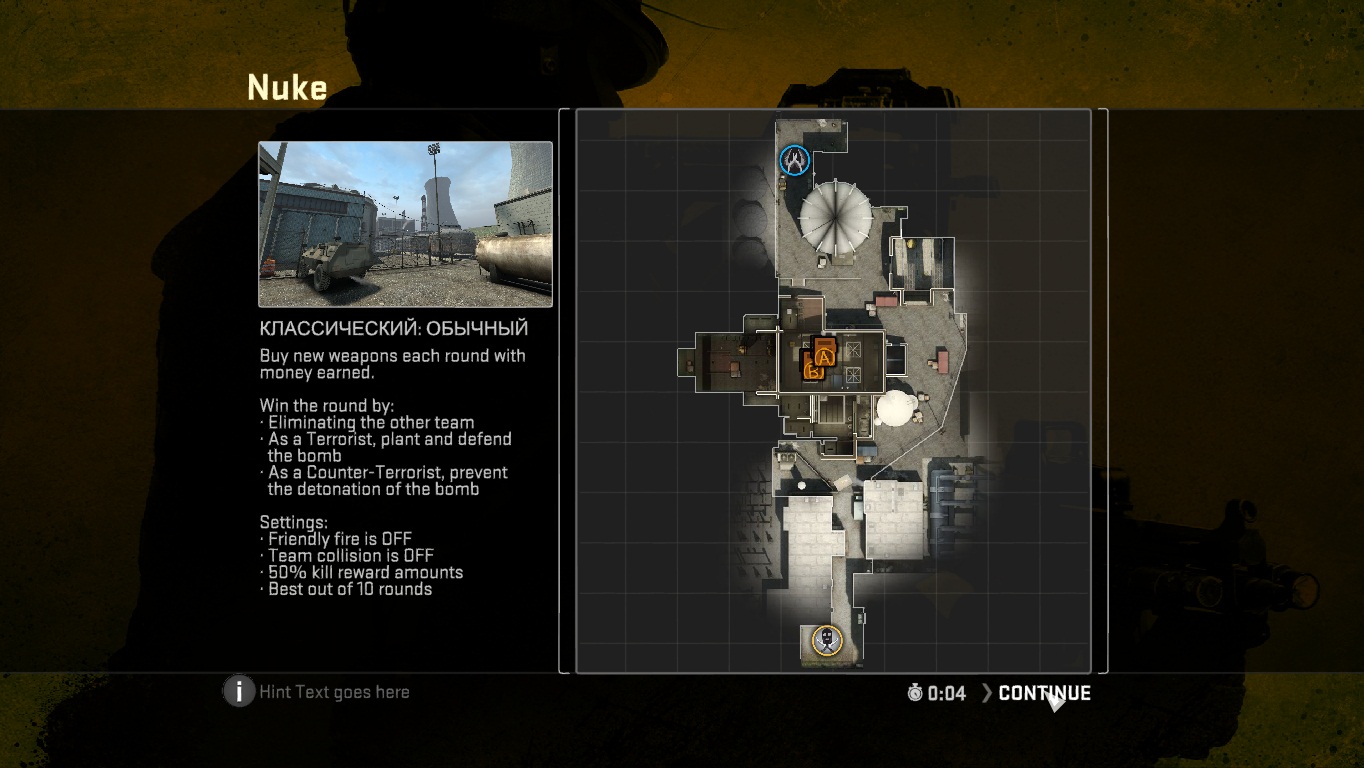 Наконец игра нашла мне матч, картой оказался "Nuke". Вообще мне показалось, что намного популярнее сейчас карты не на спасение заложников, а на разминирование бомбы, но, возможно, мне просто попадались такие сервера.