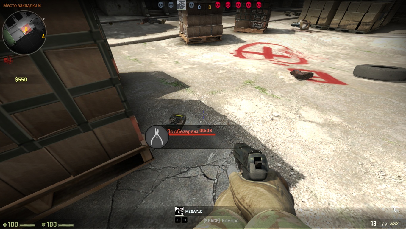 Бомба обезвреживается за пять секунд, но если в игрока, обезвреживающего её, попасть, то процесс прервётся.