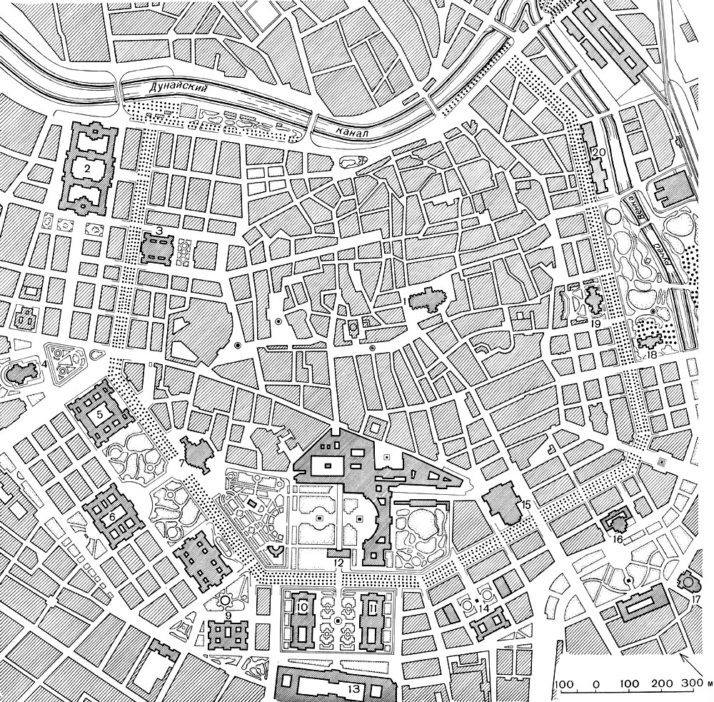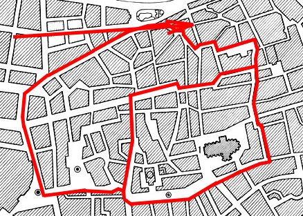 После некоторого размышления я решил сделать стереотипный средневековый городок с ратушей в качестве лендмарка. Так как со средневековой архитектурой я не особо знаком, я использовал Всемогущий Гугл и нашёл план средневекового города с кривыми улочками и неадекватной планировкой, прямо как я люблю. Этим городом оказалась Вена: